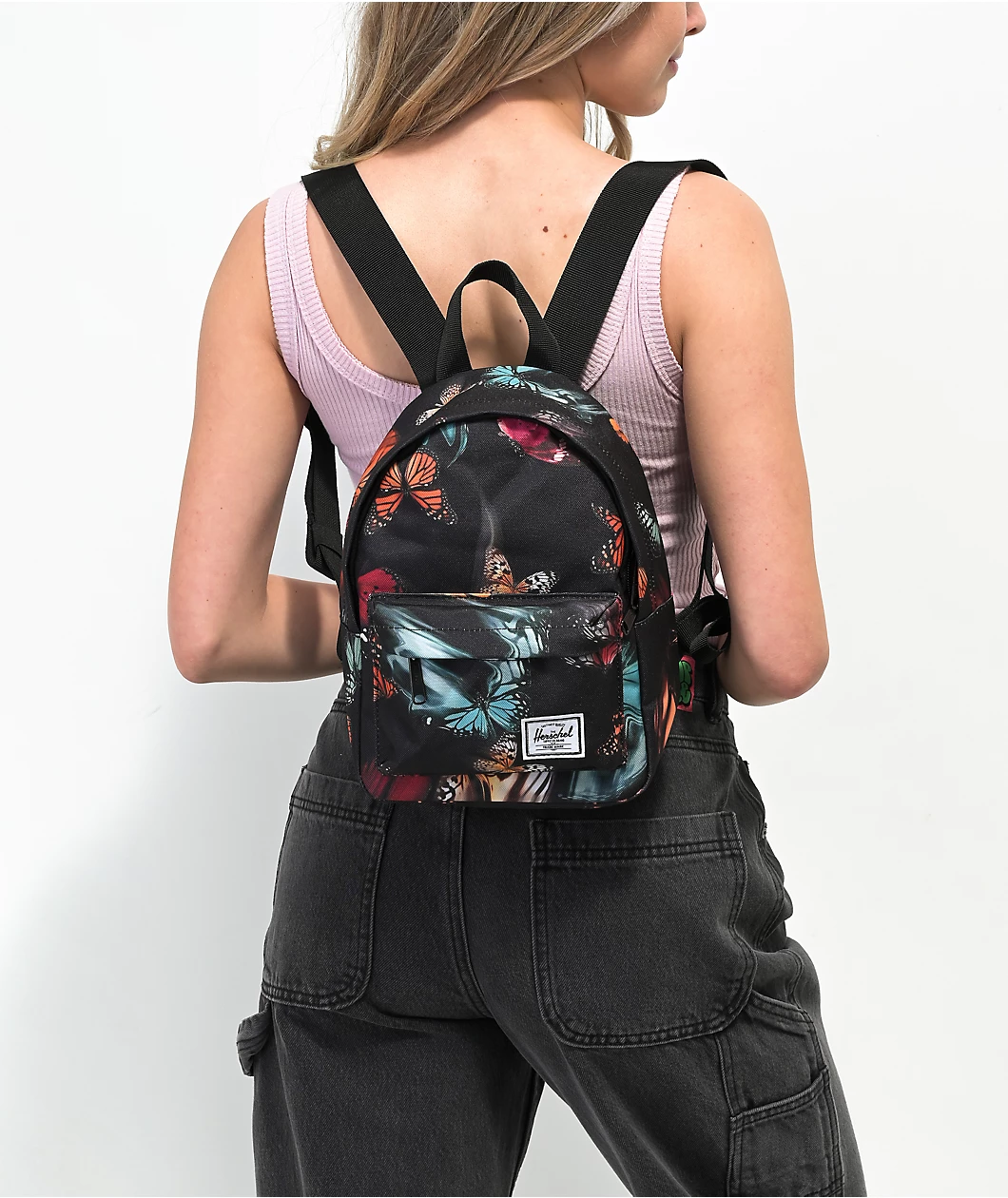 From Herschel Supply Co. comes the Classic Warp Butterflies mini backpack. This backpack has a black colorway with sublimated graphics of warped butterflies throughout, and is equipped with a main zippered compartment, another, smaller, zippered compartment on the front, and adjustable webbed shoulder straps.