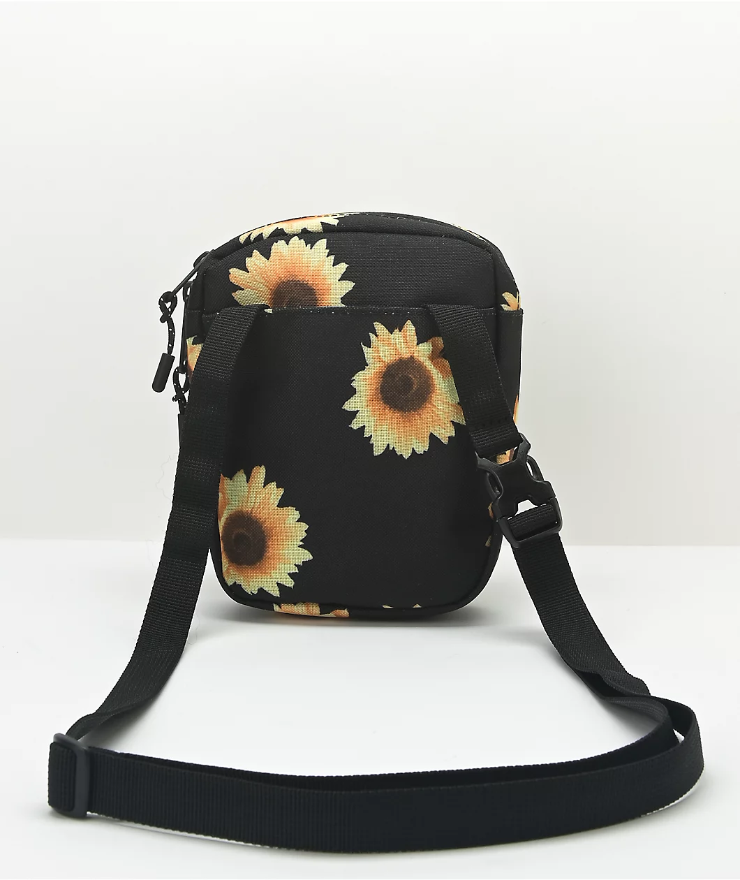 With a striking sunflower motif throughout, the Herschel Supply Co. Cruz Cross body bag features a durable black nylon construction. Great for both over-the-shoulder or crossbody wear, the small Herschel bag has a main zipper compartment with an alligator clip to secure valuables, and is lined with Herschel’s classic red and white striping. With external storage sleeves on the front and back perfect for phones and other smaller items, the crossbody bag is finished with a woven brand label on the front, metallic zippers with Prusik cord pulls, and a stowable strap equipped with a sturdy buckle closure.