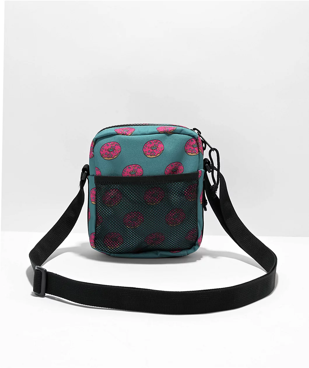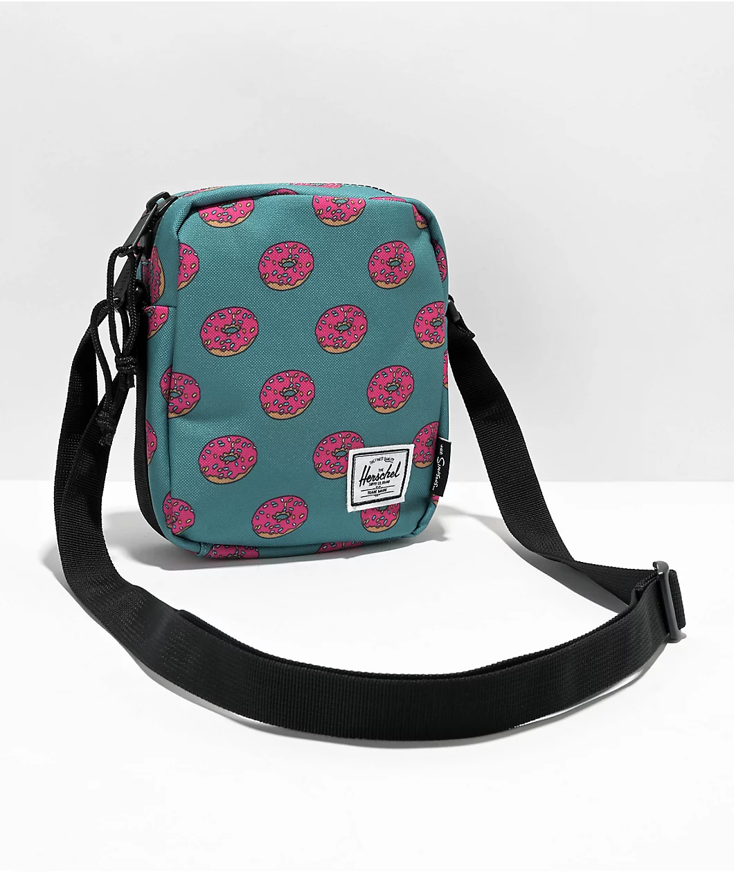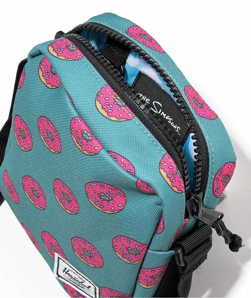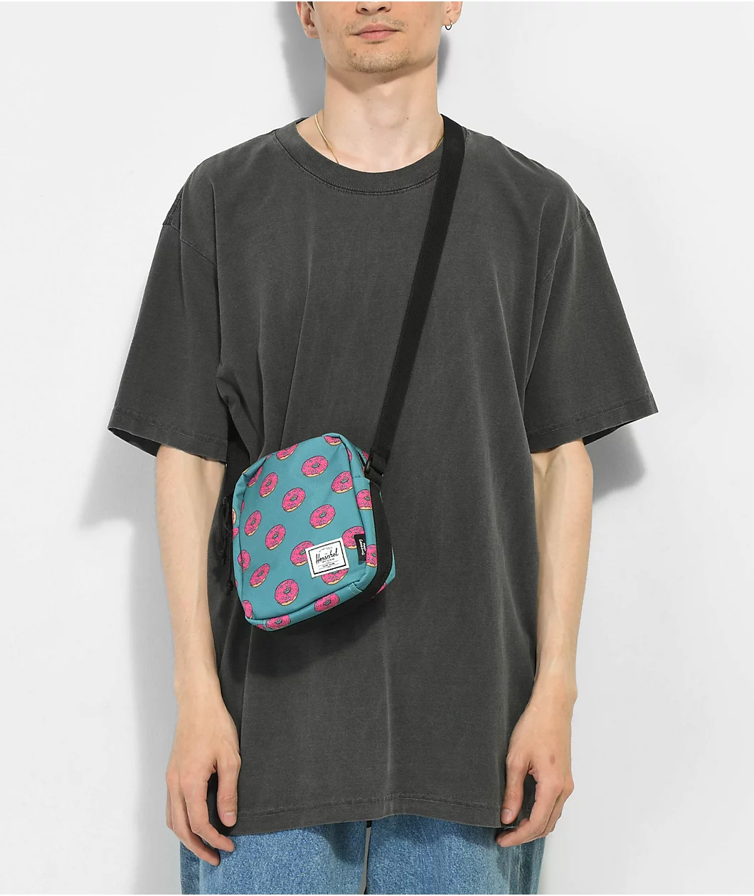 From the Herschel Supply Co. x The Simpsons collaboration comes the Homer Simpson Heritage cross body bag in a blue colorway, with sublimated pink frosted donuts throughout. Made from 100% recycled materials, the Heritage bag features a compact design perfect for holding hand held items such as keys, wallets, phones, or mobile chargers. With an internal sleeve pocket, alligator clip, and a mesh sleeve on the back, the Herschel bag is complete with an adjustable strap; lending itself nicely for shoulder or cross body wear.