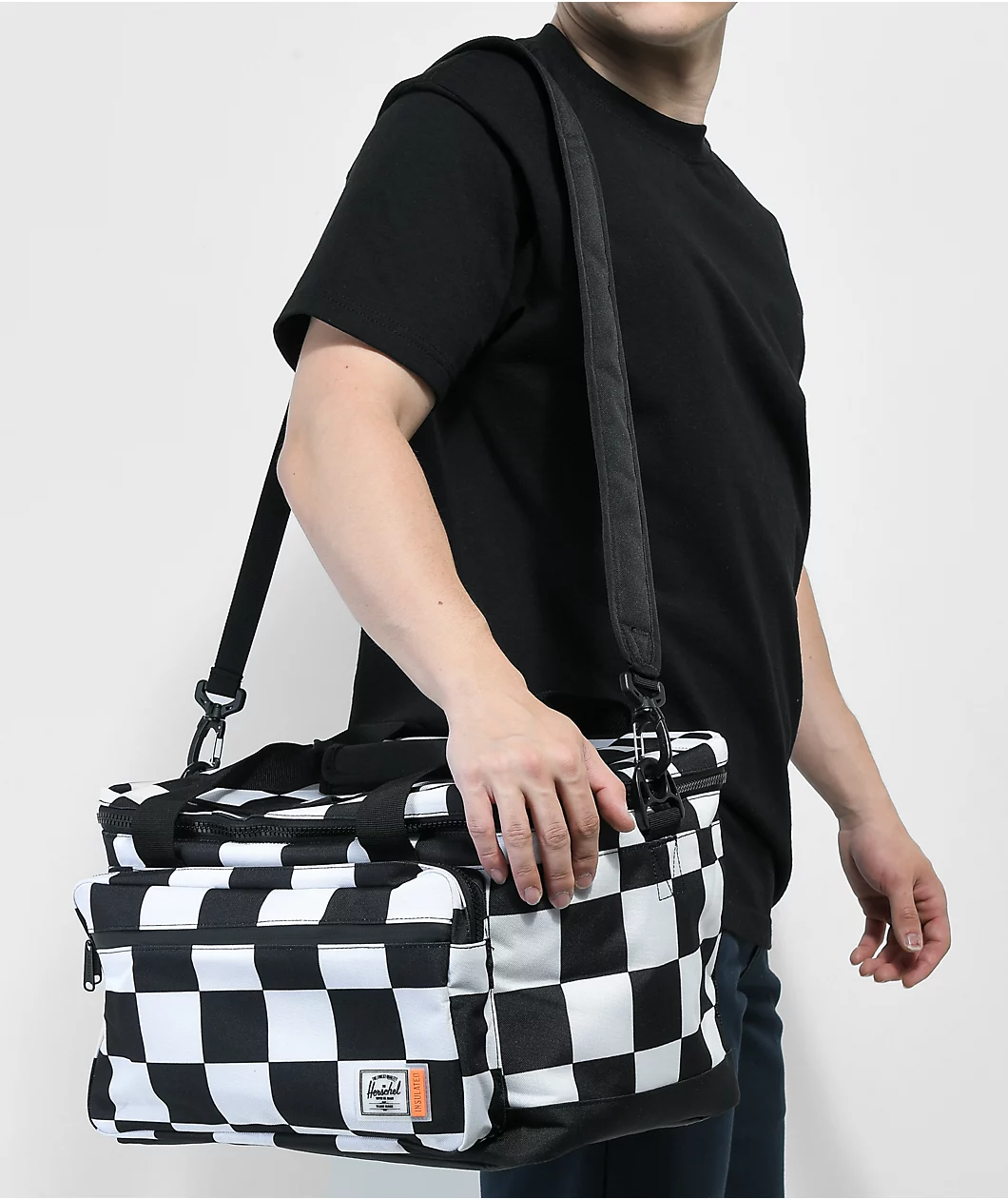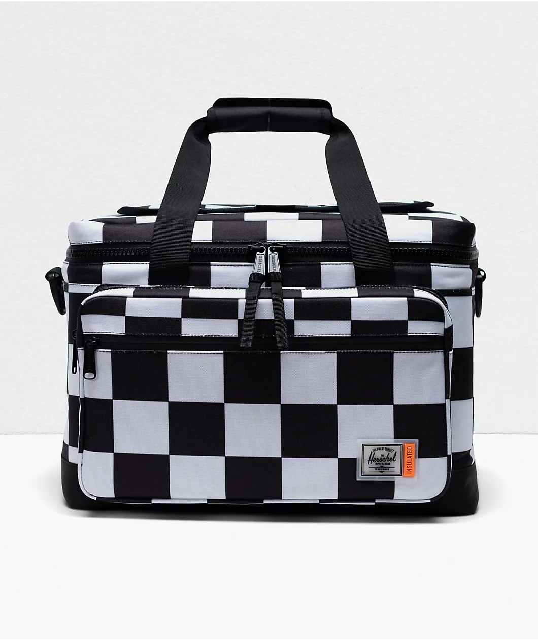 Made entirely of recycled materials, the checkered Herschel Supply Co. Pop Quiz 30 insulated cooler bag is perfect for hot days on the water and summer road trips. With a maximum capacity of 32 liters, the bag holds 30 cans for cool drinks all day. Thanks to the durable leak-proof lining, you can dump ice inside the zipped main compartment without worrying about leakage. The Herschel bag comes with convenient features such as a key clip bottle opener, a quick access flap located on top, mesh storage sleeves on the back, and smaller zipper compartments on the front. With an abrasion-resistant base, reinforced carry handles and a removable padded shoulder strap, you can truly take this cooler bag on any adventure.