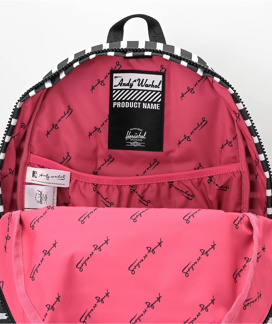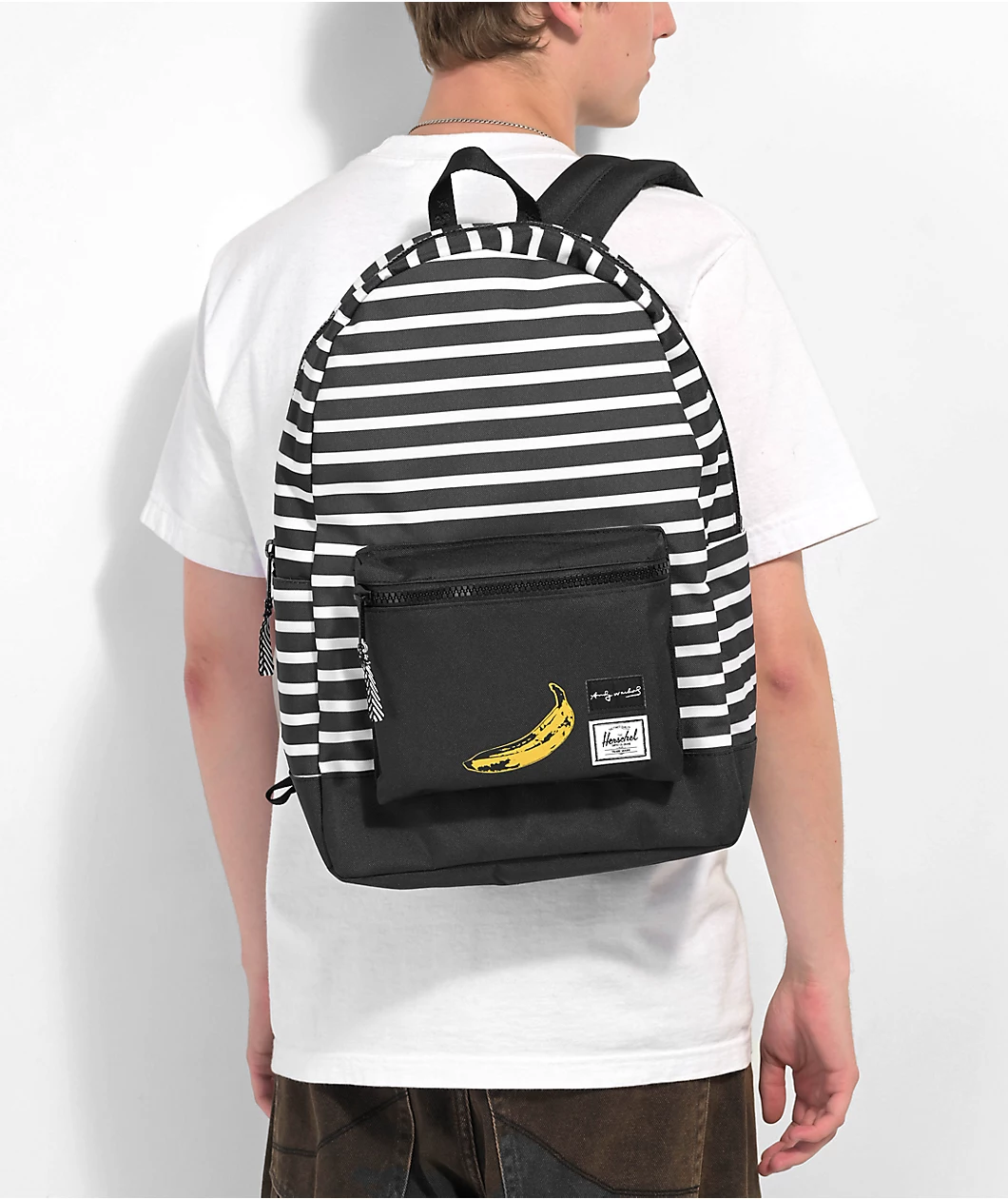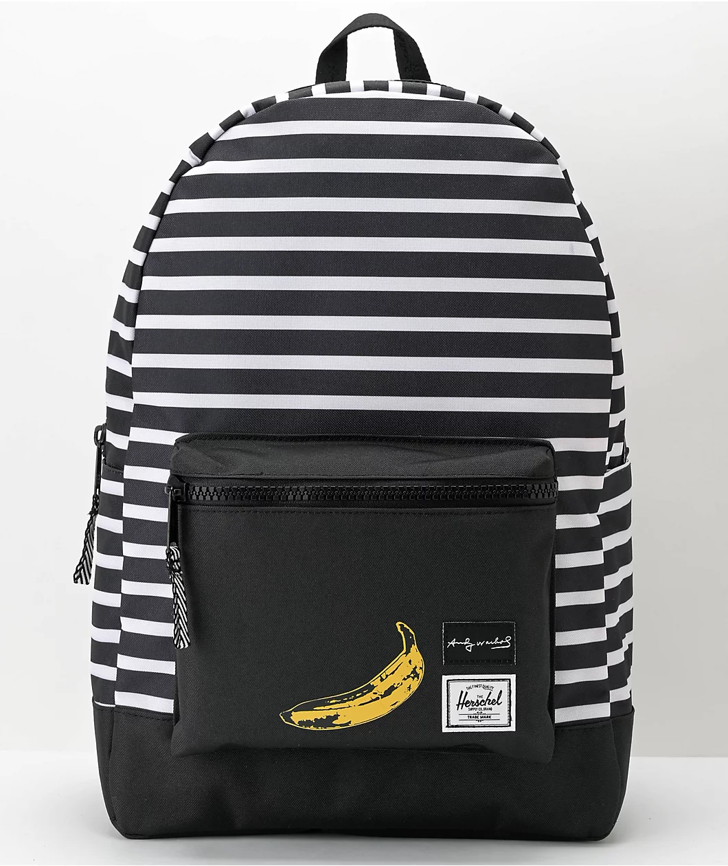 Part of the official Andy Warhol and Herschel Supply Co collection, the Banana Settlement backpack features the pop art icon’s classic stripe pattern throughout and is finished off with a banana graphic at the front pocket. Complete with two water bottle pockets and a laptop sleeve, the settlement backpack has plenty of storage space for all your daily necessities.