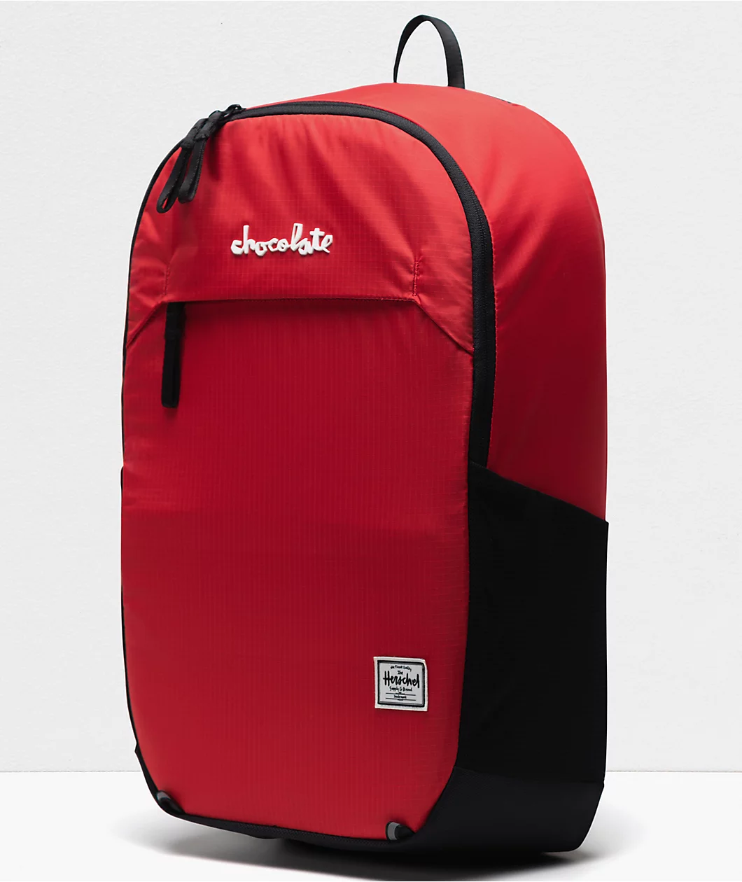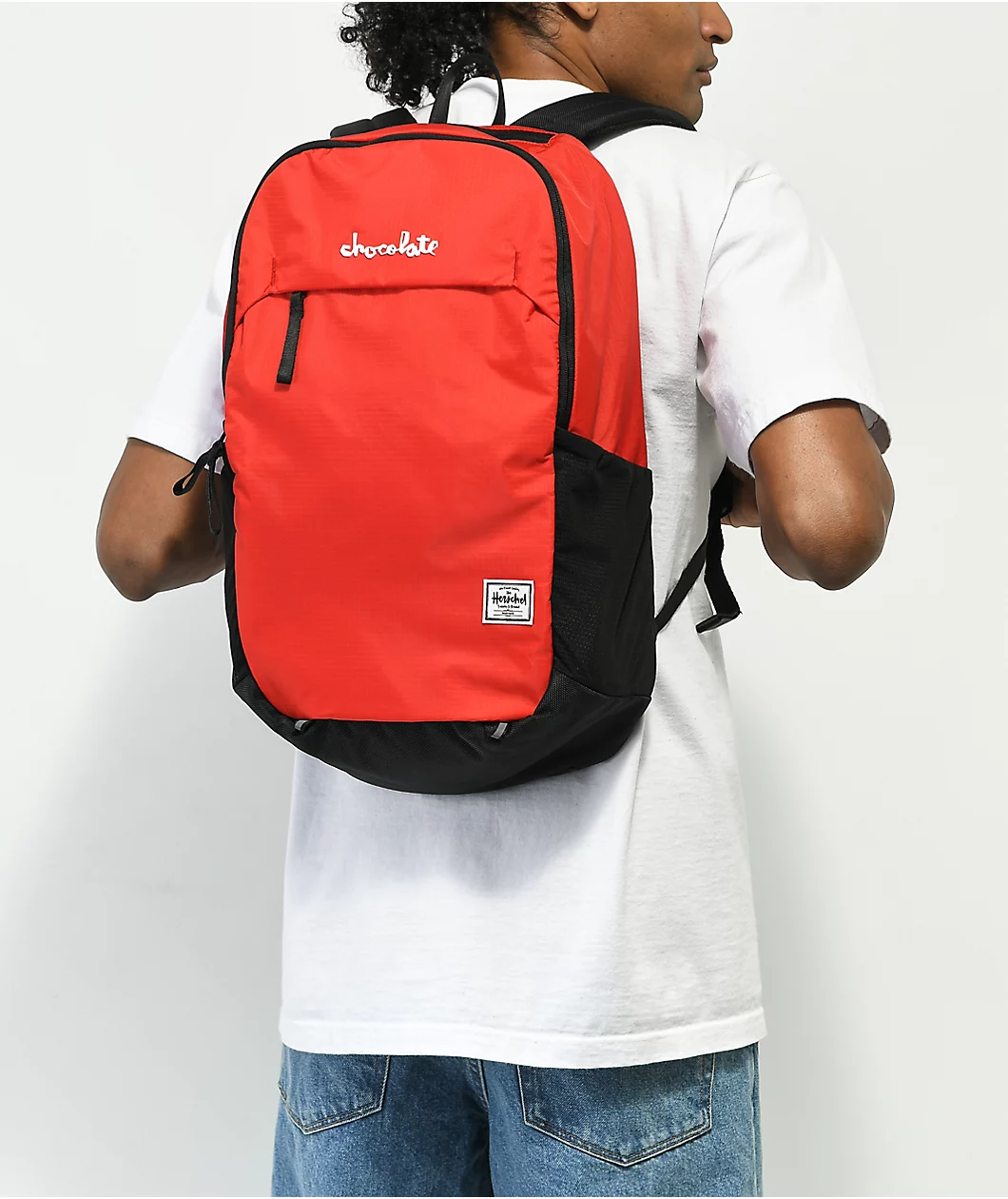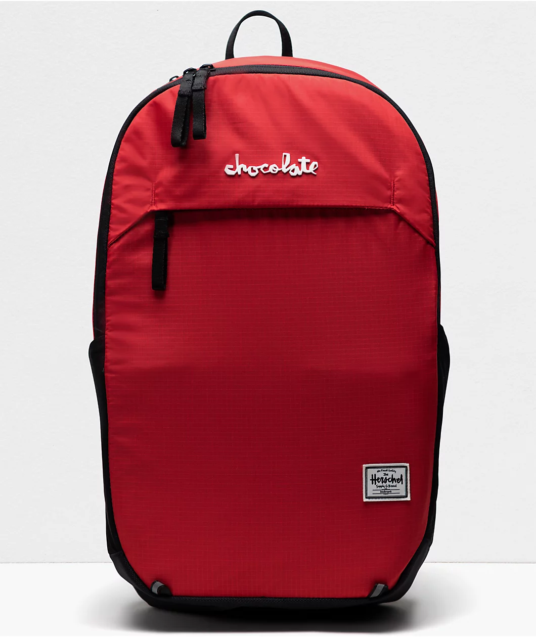 From the official Herschel Supply Co. x Chocolate Skateboards collab comes this versatile Mammoth backpack. This Herschel bag has a red colorway and Chocolate’s signature chunk logo on the front. This bag has been treated with a water-repellent finish and has a packable ripstop rain cover, that way you can keep your things protected on rainy days. Plus, this Chocolate backpack has a variety of pockets, most notably the large zippered compartment with its laptop sleeves, organizational pockets, and key clip, so you have a place for everything.