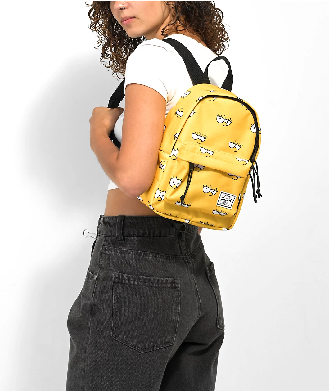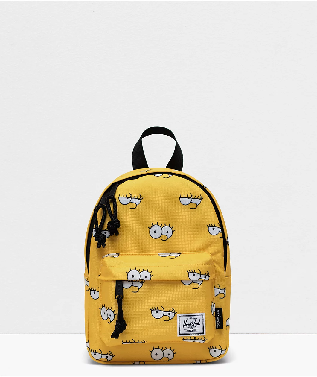 The Lisa Simpson Classic mini backpack from the Herschel x Simpsons collaboration comes in a yellow colorway with a sublimated print of Lisa’s eyes throughout. The bag is made from 100% recycled materials, and features a 6.5 liter main compartment perfect for your daily essentials. With an external zipper compartment for added organization, a top haul handle, and adjustable shoulder straps, the bag is complete with a woven Herschel label on the front.