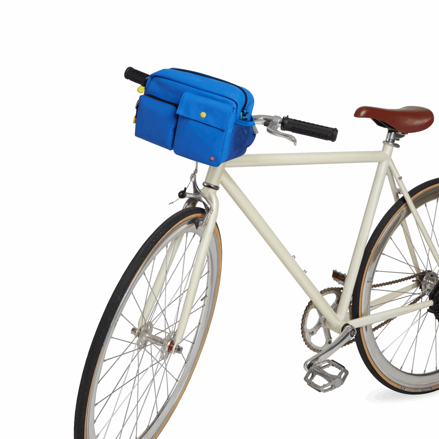 Designed with the little biker in mind as it clips to the bike or scooter handles while cruising then transforms into a crossbody bag when on foot.