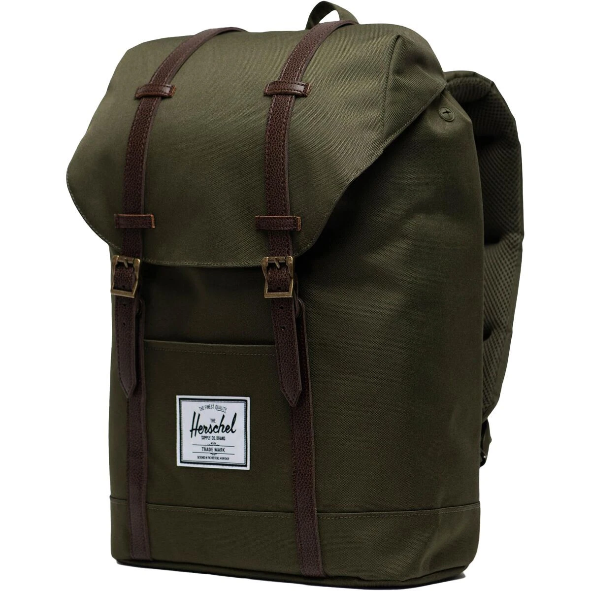 The Herschel Supply Retreat Backpack is a simple, no-nonsense backpack with rucksack styling and a couple of tricks up its sleeve. Tough woven polyester fabric and a reinforced bottom ensure durability so you can rely on it day in and day out. Leather straps give it an old school feel, while magnetic closures on the straps provide easy access to your cargo. An internal laptop sleeve keeps your computer separate from the rest of your stuff, and an external sleeve pocket provides a place to stash small items.